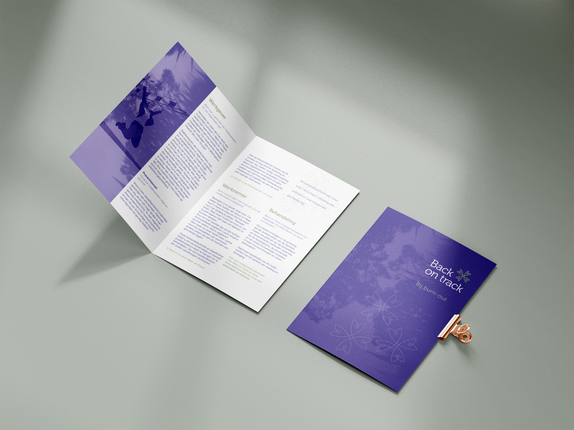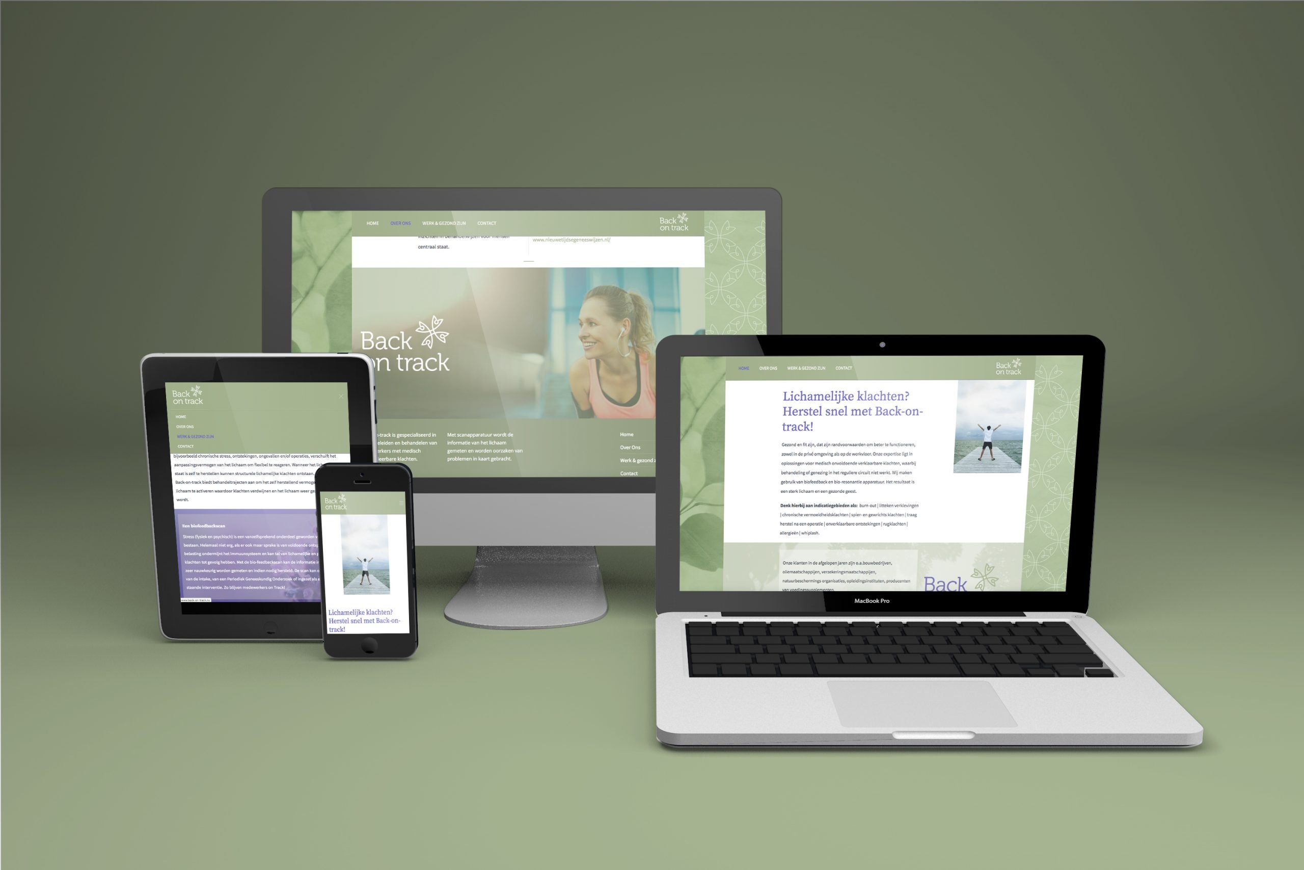 Back-on-track is gespecialiseerd in het begeleiden en behandelen van medewerkers met medisch ondefinieerbare klachten. Met scanapparatuur wordt de informatie van het lichaam gemeten en worden oorzaken van problemen in kaart gebracht. Studio Dutches verzorgde de visuele identiteit en bouwde de website.