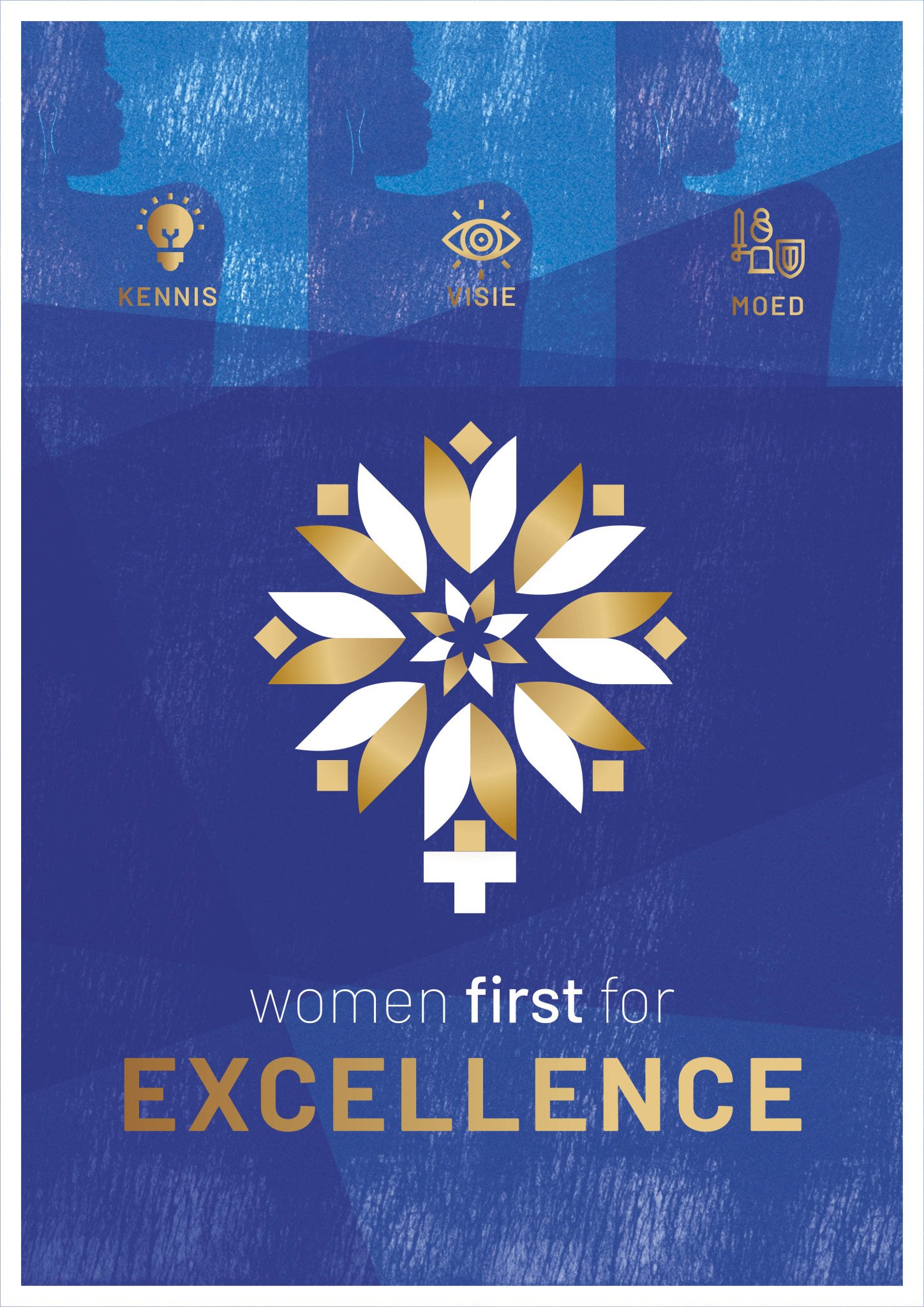 We gaan uit van het internationale vrouwen-symbool maar maken het vooral een symbool van leiderschap. In het centrum van de bloem staat de leider. De 8 puntige ster communiceert met alle omringende bladeren. De vorm is gebaseerd op de Lotus. Bij de Chinezen en in het oude Indiƫ stond de lotus symbool voor reinheid, volmaaktheid en de vrouwelijke kant van de mens